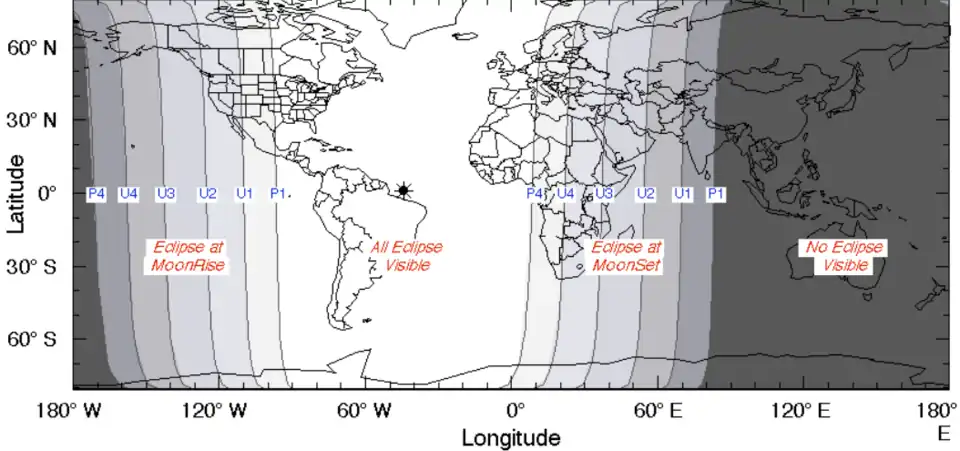 L'éclipse est visible depuis une majeure partie des Amériques, de l'Asie, de l'Europe et de l'Afrique.