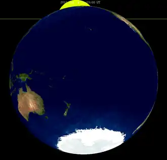 Parmi ceux-ci en Amérique du Nord, les observateurs de l'ouest du Canada et des États-Unis avaient la meilleure vue, puisque le coucher du Soleil se produisit après la mi-éclipse[2].