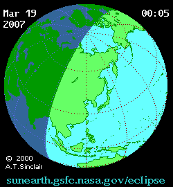 L'éclipse partielle fut visible le long d'un couloir débutant en Inde, puis au-dessus de l'Asie et l'est de la Sibérie, achevant sa course entre l'Alaska et le pôle Nord.
