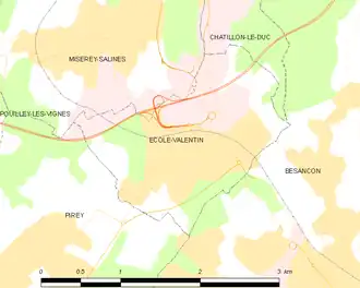 - ↑ « Orthodromie entre École-Valentin et Besançon », sur fr.distance.to (consulté le ).