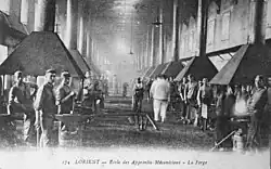 On peut donc considérer que la première école d’apprentis mécaniciens de la Flotte fut créée à Lorient en . L’entrée du premier contingent eut lieu le [3]. Cette école fonctionnera, avec une courte interruption du au , jusqu'au , date de son évacuation partielle avant l'occupation allemande. Le un détachement militaire d'apprentis et d'instructeurs rejoint l'école de Saint-Mandrier; l'école est définitivement fermée. Les bâtiments sont détruits lors des bombardements de 1943. L'école ne sera pas rouverte.