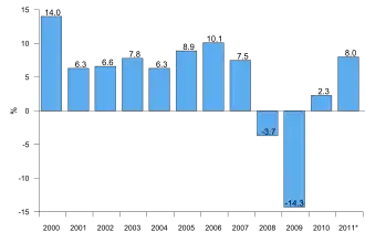 | Taux | ? | -8 | -21,2 | -5,7 | -1,6 % | 6,5 % | 4,9 % | 13,1 % | 4,3 % | -0,4 % |