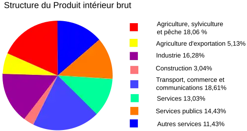 | PIB par secteur | agriculture : 19,8 % industrie : 25,2 % services : 43,4 % (2018) [2] |