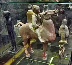 Les ateliers gouvernementaux des Han fabriquent des objets de luxe, des objets de la vie quotidienne et même des articles funéraires connus sous le terme de Mingqi (明器/冥器). Ces Mingqi incluent, entre autres, des figurines en céramique et des briques ou des tuiles servant à décorer les murs des tombeaux[78]. Ces ateliers sont sous la tutelle du Petit Trésorier (少府)[79].