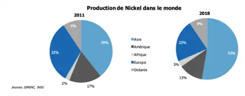 - ↑ Crise de surproduction qui fait s'effondrer les cours de nickel