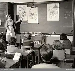 - En 1947, un comité d’études sur l’éducation sexuelle en milieu scolaire est créé, présidé par l’inspecteur général François, mais il faudra attendre vingt-cinq ans avant de voir disparaitre des manuels scolaires les planches anatomiques présentant l'être humain sans organes sexuels[11]. Avant 1968, des enseignants, éducateurs et organismes spécialisés prennent ici et là des initiatives en abordant certains thèmes relatifs la sexualité. Mais il faut attendre les retombées du mouvement de Mai 1968 pour que l'information sur la sexualité entre officiellement à l’école[43], avec
