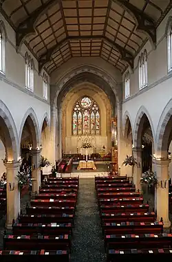 Le style du bâtiment, à trois nefs, reflète les canons du néo-gothique d'origine anglaise.