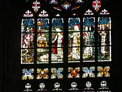 Le vitrail de l’autel : La découverte du corps d’Henri II le Pieux - Les Apôtres Pierre et Paul
