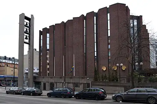 L'église a été conçue par Sture Frölén et construite en 1974 sur un terrain qui abritait autrefois un dépôt de tramway, à l'intersection de Birger Jarlsgatan et de Kungstensgatan[3],[4].