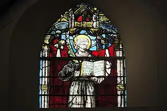Une autre verrière du XVIe siècle composée d'une lancette brisée représente un saint martyr qui tient un livre ouvert dans sa main gauche et la palme du martyr dans sa main droite[3].
