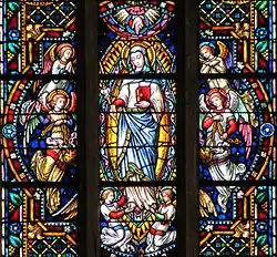 - Les vitraux datent la fin du XIXe siècle, ils ont été réalisés par les ateliers de Franz Xaver Zettler à Munich. Dans le chœur, ils mettent en scène les étapes de la vie de la Vierge Marie. Ils remplacent des verrières de la fin du XIIIe siècle dont quelques éléments sont encore en place. Une partie des vitraux d'origine a été identifiée dans la chapelle du château de Kreuzenstein en Autriche où ils ont été insérés en 1902[28],[29].