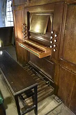 Parmi le mobilier de base de l'église, un confessionnal du dernier quart du XVIIe siècle est classé[60]. Les deux vantaux en bois du portail sud sont également classés, bien que les bas-reliefs de leurs panneaux supérieurs aient été endommagés sous la Révolution. Les panneaux inférieurs sont décorés d'arabesques[61].