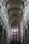 Le chœur, l'abside et le transept de l'église s'élèvent sur 3 niveaux. L'abside dispose d'un système de doubles oculi décalés, permettant une meilleure luminosité dans l'édifice. La lumière est également apportée par la présence d'une verrière. Il semble que l'architecture ait été influencée par celle de Notre-Dame-de-Paris[1].