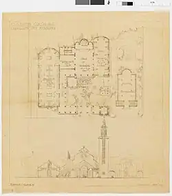 Architecte de l'archevêché[3], Paul Tournon avait déjà été en 1926 l'architecte du clocher de l'église Saint-Louis de Villemomble, dont Carlo Sarrabezolles  également de confession chrétienne[2]  réalisa les 28 figures du clocher[4],[5].