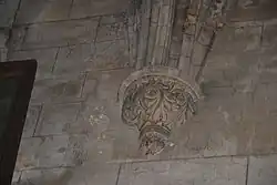 Sur les deux clés de voûte du chœur sont représentés : un évêque et une croix de Malte.