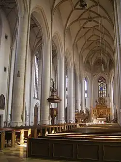 La construction de l'église est terminée en 1525, cent ans après le début des travaux. Les deux tours, qui étaient prévue bien plus hautes, et devaient être couvertes de toits pointus, n'ont pas été achevées.