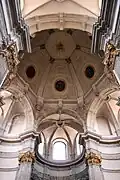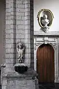 - Les bénitiers sont ornés de têtes d'anges (XVIIIe siècle), œuvres du sculpteur bruxellois Gabriel Grupello.