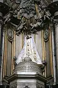 - Au-dessus du maître-autel en marbre blanc offert par la famille Roose de Bouchout ou de Bouchaut(e)[1] se trouve, dans une niche, la statue en bois de Notre-Dame de Bon Secours; elle daterait du XIVe siècle. Les autels latéraux sont dédiés à Saint Joseph et Saint Jacques le Majeur. Ce dernier avait été offert par la famille de Fraula. Les statues sont l'œuvre de Jean-Baptiste van der Haegen (1724).