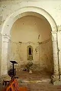 Le sanctuaire, éclairé par des fenêtres en plein-cintre, a été récemment restauré. Deux très beaux chapiteaux, l'un de branchages, l'autre de vannerie, tous les deux d'une magnifique exécution, surmontent les colonnes qui séparent le chœur de l'abside demi-circulaire.