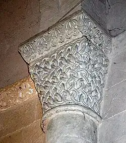 L'arc triomphal : Les deux chapiteaux, à l'entrée du chœur sont d'un travail remarquable. Au nord la corbeille est formée de motifs de vannerie sous un tailloir à rinceaux entourant. Au sud, le chapiteau est orné d'entrelacs qui le recouvrent de lianes et feuillages de style saintongeais.