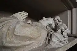 Lors de la restauration du mur de l'église, on a découvert à la fin du XIXe siècle un relief funéraire de 60 cm sur 40 cm datant du milieu du XVe siècle représentant un homme et une femme aux pieds de saint Come et saint Damien. Au-dessous du groupe on peut lire :