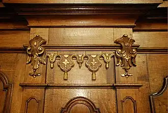 Les piliers situés entre la nef et la croisée sont ornés de lambris en chêne ornés de feuillages, de lambrequins et de glands rehaussés de dorures.