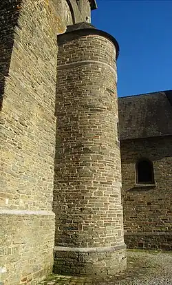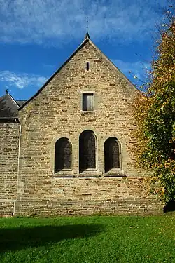 L'abside est percée de deux fenêtres en plein cintre dont les piédroits harpés et l'arc sont constitués de blocs de schiste alors que l'appui de fenêtre est en pierre bleue.