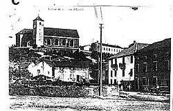 - L’église, en été, surplombant les maisons de la vieille-ville.