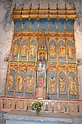 -Dans la chapelle Saint-Roch, à droite de la nef, l’autel en marbre de Caunes et le tabernacle en bois sculpté et doré du XVIIIe siècle