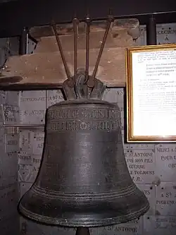 • Une cloche de 1487 à l'origine située dans la chapelle des Vieux Moulins.