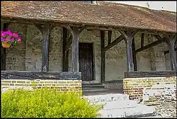 Sur la façade avec un retour, sur le coté nord se trouve un caquetoire ouvert qui fait la particularité de cette église[4]. Cette galerie extérieure du XVIe siècle servait d’abri aux réunions paroissiales qui avait lieu à la sortie de la messe sous la présidence du bailli [5].