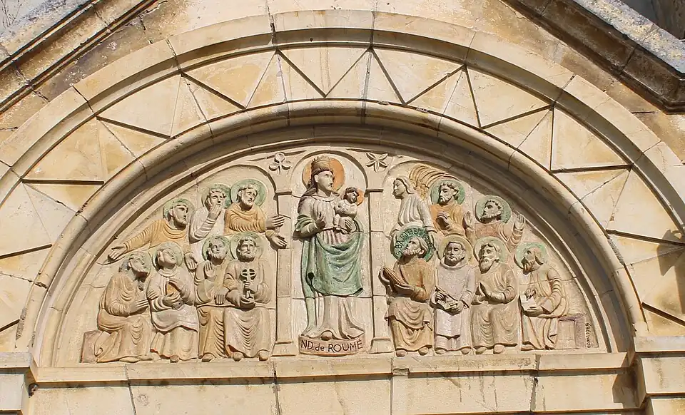 En 1989 pour le centenaire de la consécration de l’église, un bas-relief a été mis en place au-dessus du porche.