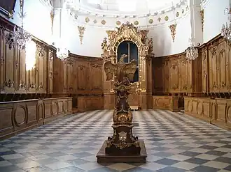 Le décor contraste un peu avec le reste de l'église, on revient dans un décor plus sobre et donc plus en accord avec l'esprit des Chartreux. Elle fut terminée au XVIIIe siècle.