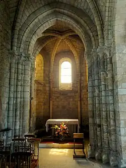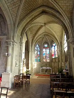 Si les absides en cul-de-four sont d'une grande rareté dans la région, les églises à posséder une telle abside et une absidiole à la fois sont encore plus rares. La chapelle de la Vierge au sud contraste fortement avec l'ensemble roman par sa luminosité et la légèreté de son architecture gothique rayonnante parvenue à l'apogée. Cette petite chapelle n'est pas d'une grande originalité, mais c'est une œuvre de qualité d'autant plus précieuse que son style n'est pratiquement pas représenté dans le département, et que les bas-côtés se terminant par un chevet à pans coupés y sont l'exception.