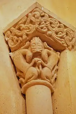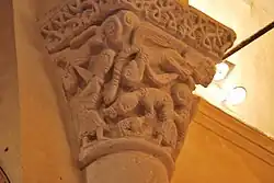Certains guides touristiques affirment que ce chapiteau représente Jonas avalé par la baleine, malgré le fait que l'on voit sur la corbeille deux serpents, et non pas une baleine, qui avalent un homme et une femme !