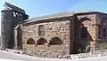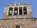 Elle est construite en brèche volcanique rougeâtre, avec un clocher à peigne percé de quatre ouvertures. Sur son côté sud elle présente plusieurs enfeus.
