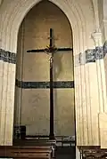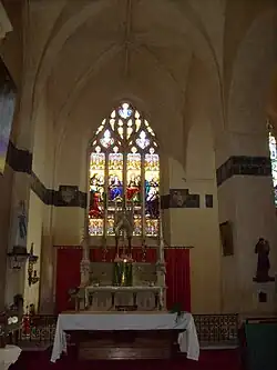 Le chœur se termine par un chevet plat percé d'une grande baie flamboyante intégrant quatre lancettes réunies deux à deux dans une composition plus large mêlant soufflets et mouchettes.