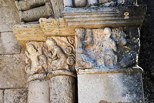 Les motifs et scènes que l'on peut encore reconnaître évoquent les péchés capitaux. On peut remarquer un parallélisme avec les chapiteaux du portail de la chapelle Saint-Gilles de Pons.