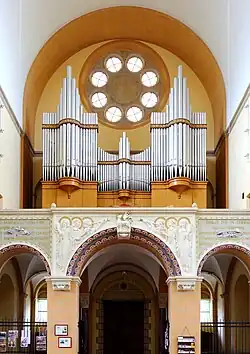 L'orgue a été construit en 1939/40 par la manufacture d'orgues des frères Rieger. Le 7 juillet 1940, l'orgue fut consacré par le cardinal archevêque Theodor Innitzer.