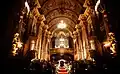 La décoration de la nef centrale est réalisée à partir de 1855, d'après un projet du peintre Mário Bragaldi, dans un style néoclassique.