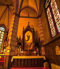 Le bâtiment de l'église a été construit dans le style néo-gothique avec un plan roman français. L'église comporte trois zones, chacune avec trois arcs. Dans la zone centrale, il y a un arc unique supplémentaire contenant le presbytère, flanqué de chaque côté par la sacristie, au-dessus de laquelle se trouvent les loges. Les extrémités des fenêtres, des tours et des couronnements du toit sont constitués d'éléments gothiques - des fleurs en forme de croix, ainsi que des croix forgées.