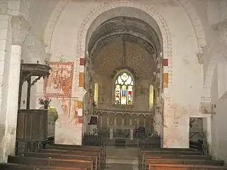 L'église suit le plan des églises romanes, avec une nef large à trois travées, un large transept dont les croisillons latéraux communiquent avec la nef par deux passages berrichons, un chœur, une abside, et deux chapelles latérales. L'église a fait l'objet de plusieurs remaniements.