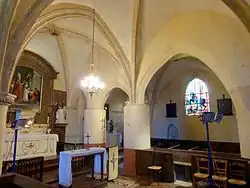 Les vitraux sont dus pour partie à Jacques Bony (1948).