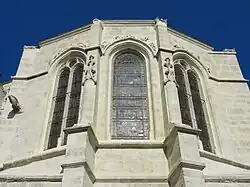 - L'ange dans l'oculus au-dessus du portail latéral (n° 10) provient d'un vitrail offert par Auguste Potron en 1892. La baie était en forme de quadrilobe à cette époque. Quand elle a été réduite à sa forme actuelle lors de la restauration de 1975, les autres composantes du vitrail ont été sacrifiées[18] (sans illustration).