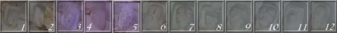 Les églises édifiées durant l'âge roman, respectaient une logique d'agencement. Celle-ci attribuait volontiers le côté sud aux personnages du Nouveau Testament[23]. Sur le versant sud, douze personnages apparaissaient jusqu'au XIXe siècle à la vue des fidèles. S'il s'agit des douze apôtres, on peut tenter de les identifier selon l'ordre dans lequel ils apparaissent dans le canon de la messe. Selon Viollet-le-Duc[22]: « Dans le canon de la messe, les douze apôtres sont désignés dans l’ordre suivant : Pierre, Paul, André, Jacques, Jean, Thomas, Jacques, Philippe, Barthélemy, Matthieu, Simon et Taddée ». Il arrive qu'un évangéliste prenne la place d'un apôtre[22]. L'évangéliste Marc[22] prend parfois la place de Simon, le onzième apôtre dans l'ordre du canon. Le modillon "11" porte un personnage stylisé avec une crinière. La forme allégorique, proche du tétramorphe à travers laquelle Marc est le plus souvent représentée dans la statuaire chrétienne : celle du lion.