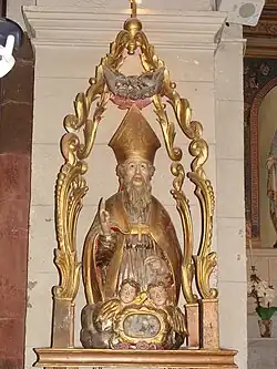 À droite de l’autel se trouve un buste de saint Grégoire. Aujourd’hui en bois doré, ce reliquaire était à l’origine en argent. Mais il fut réquisitionné en 1793 pour être fondu. Le vicaire de l’époque avait pris le soin d’enlever les reliques du saint homme avant de le donner aux autorités. Grâce à lui les reliques ont pu être remises dans le nouveau buste en bois par la suite. Il existe un autre reliquaire de saint Grégoire en forme de bras qui est exposé le lors du pèlerinage arménien.
