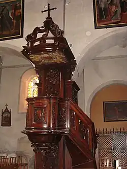L’autel de marbre blanc a été commandé au XIXe siècle par « le chartreux », un lointain cousin du curé du village dont les aventures épiques sont racontés dans un livret écrit par le père Richard Duchamblo. Le tabernacle provient de l’ancien autel et date du XVIIIe siècle. Derrière l'autel se trouvent les orgues, datant du XVIe siècle ; elles seraient les plus anciennes en état de marche dans le sud-est de la France.