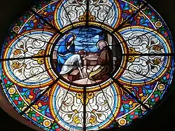 Les deux oculi du transept figurent : Le Baptême du Christ et La Sainte Famille.