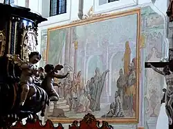 De curieuses disputes se déclenchèrent concernant le mausolée Rosenberg, qui fut érigé au milieu du presbytère après la mort de Wilhelm von Rosenberg en 1592, et qui gênait les offices. Le Rosenberger Reiter placé sur le maître-autel fut enlevé dès 1621, l'enlèvement définitif du mausolée n'eut lieu qu'en 1783 dans le cadre des réformes du Joséphisme.