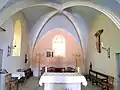 Le chœur de l’église actuel a été construit entre 1450 et 1530[1]. Il est quadrangulaire avec une croisée d’ogive et est éclairé par un grand vitrail au fond[1]. Ce dernier est contigu à un repositorium en pierre taillée servant à accueillir la réserve eucharistique en dehors des messes[1]. L’abside dispose de deux niches d’époque, une carrée et une se finissant en triangle[1].
